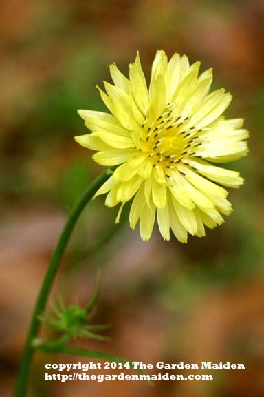This member of the Asteraceae family looks very similar to a common lawn dandelion, except the flowers are borne on stalks about 12-15″ (in my yard). Pyrrhopappus carolinianaus (Carolina desert chicory) is a native flower. I think the images on Southeastern Flora are better for this species versus the images linked to the Wildflower.org site above, but they have better taxonomic and cultural information. It is growing under the semi-shade canopy of mature (not crape murdered) crape myrtles along the sidewalk. This is one of several native wildflowers I allow to bloom before mowing.