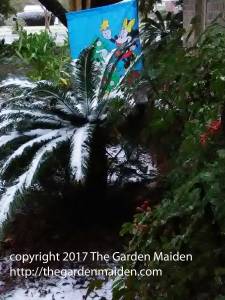 Sometime after going inside to refill my coffee cup with USDA Organic (The Bean Coffee Company) Peppermint Mocha, it began to snow! Real flakes of snow!