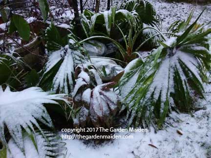 The palm fronds may be dropping with snow now, but they will be perky in 70 degree temps in another week.