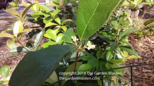 Fragrant tea olive. Well, that’s a story I’ve told here. When we moved to the home, we were ill advised, that a lovely shrub outside our garage was a nasty invasive. We got out the chainsaw and…well, cut it down. Turns out it was this lovely (not the one featured above), fragrant tea olive. The good news is it grew back from the stump, and I apologize every year as I pat it on the head. But, in the meanwhile, I planted a couple more. To ease my guilt. This is a fabulously fragrant flowering shrub.