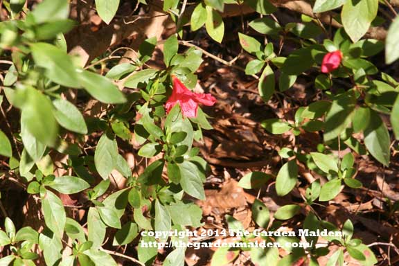 I was really excited to find this fine, native shrub (Calycanthus floridus) blooming near the shed in my backyard. Its actually not planted in the best location, squeezed up next to the shed between a camellia and bridal wreath spirea (see last week’s post). In fact, I didn’t find it until year two living in my new home. My sweetshrub has several nice suckers and I plan to relocate all of them to shady areas under the mature tree canopy in my yard where they will get bigger and bloom more profusely. The fragrance is very pleasant, but not overwhelming, though the plants I have are so crowded there are few blooms per plant. Until I found the first bloom last year, I had no idea what the plant was or that it was hiding back there. Since it has just opened its first two flowers, I hope to get some better images in the next week.