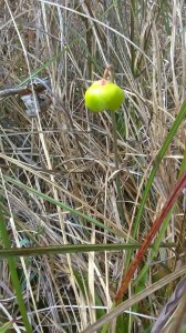 For the first time ever, we had a banana flower. Above this flower, we have a nice cluster of bananas. I’m not sure when to pick them. But I guess you’d say only one of the flower clusters was pollinated on this long stem, because each time a new flower opens, the individual flowers fall, and well, no bananas.
